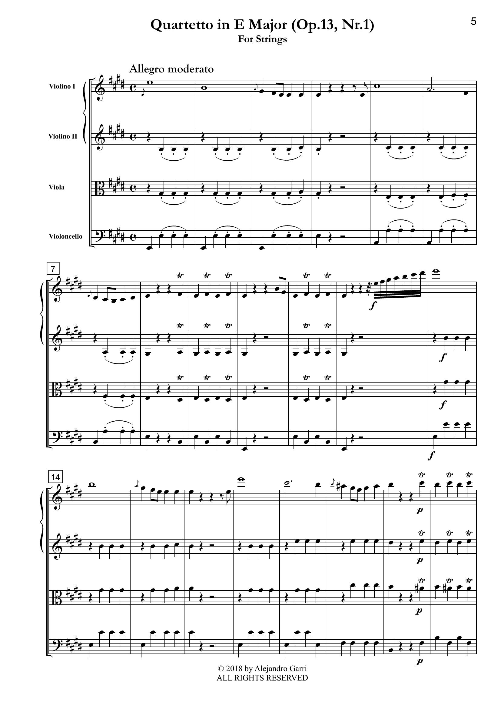 Vanhal, Johann Baptist (1739 – 1813) String Quartet in E Major (Op.13, Nr.1), for Strings (full score & 4 parts)