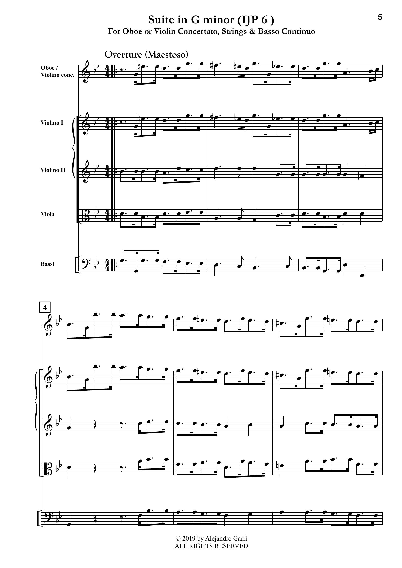 Pfeiffer, Johann (1697 – 1761) Suite in G minor (IJP 6), for Oboe or Violin concertante, Strings & Basso Continuo (full score & 5 parts)