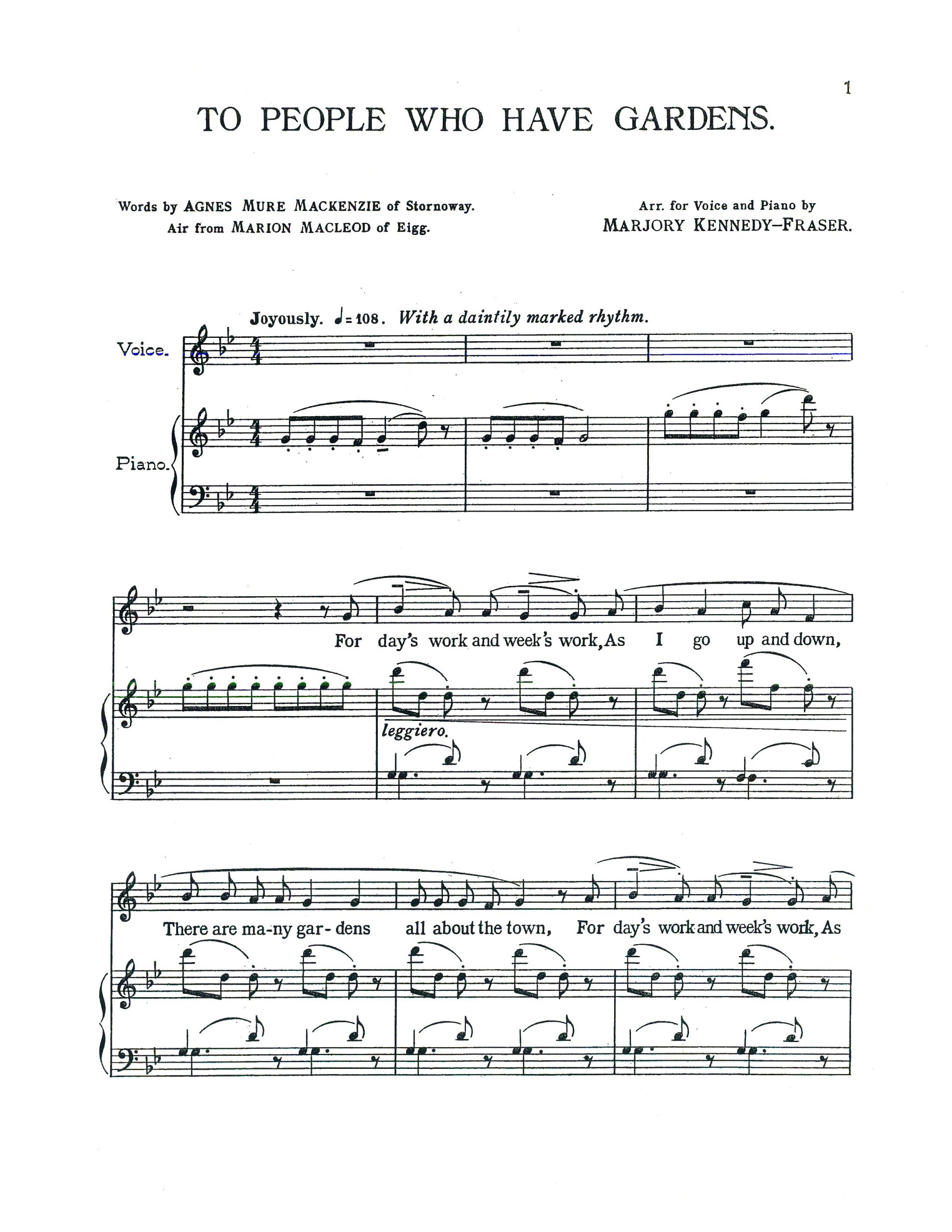 Arranged for Voice and Piano by Marjory Kennedy-Fraser from Songs of the Hebrides.