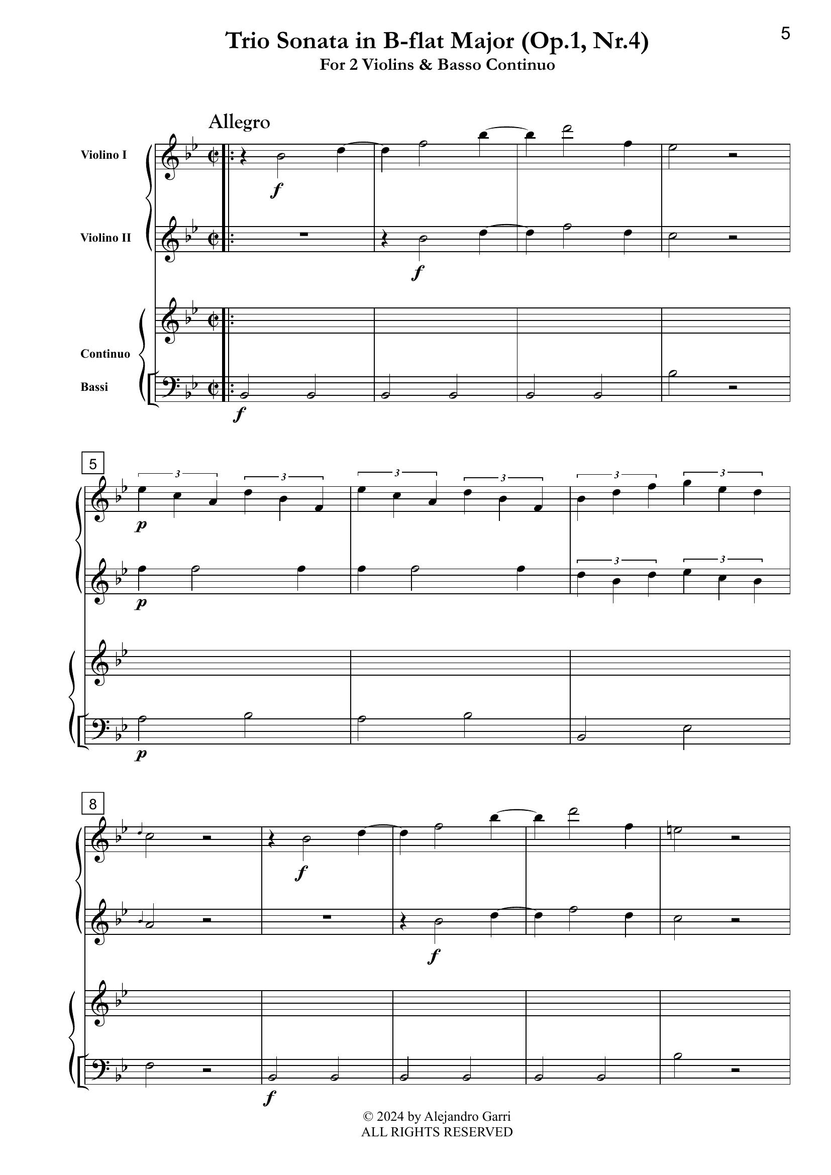 Solnitz, Anton W. (ca.1708-1758) Trio Sonata in B-flat Major (Op.1, N°4), for 2 Violins & Basso Continuo (full score & 3 parts)
