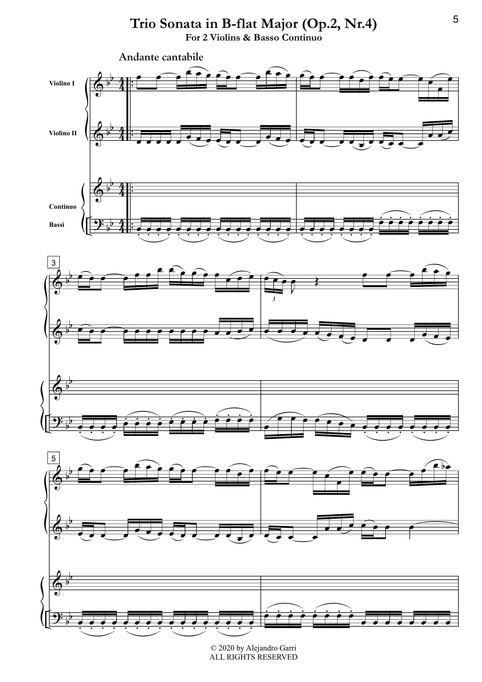 Pugnani, Gaetano (1731 – 1798) Trio Sonata in B-flat Major (Op.2, Nr.4), for 2 Violins & Basso Continuo (full score & 3 parts)