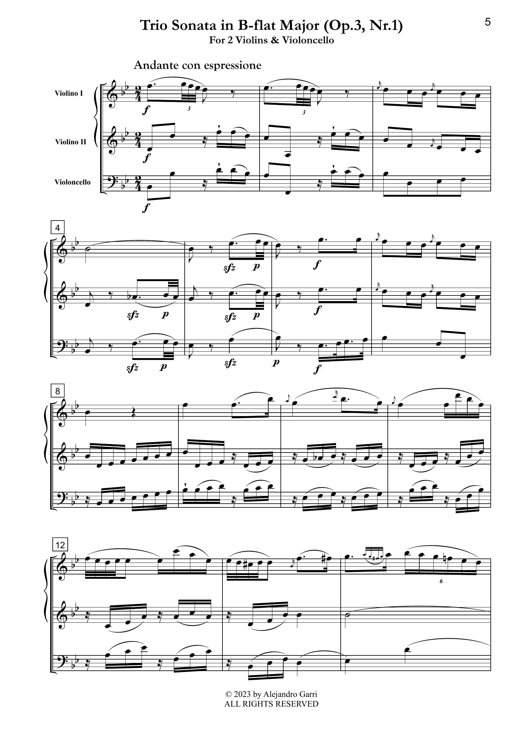 Cannabich, Christian (1731 – 1798) Trio Sonata in B-flat Major (Op.3, Nr.1), for 2 Violins & Violoncello (full score & 3 parts)