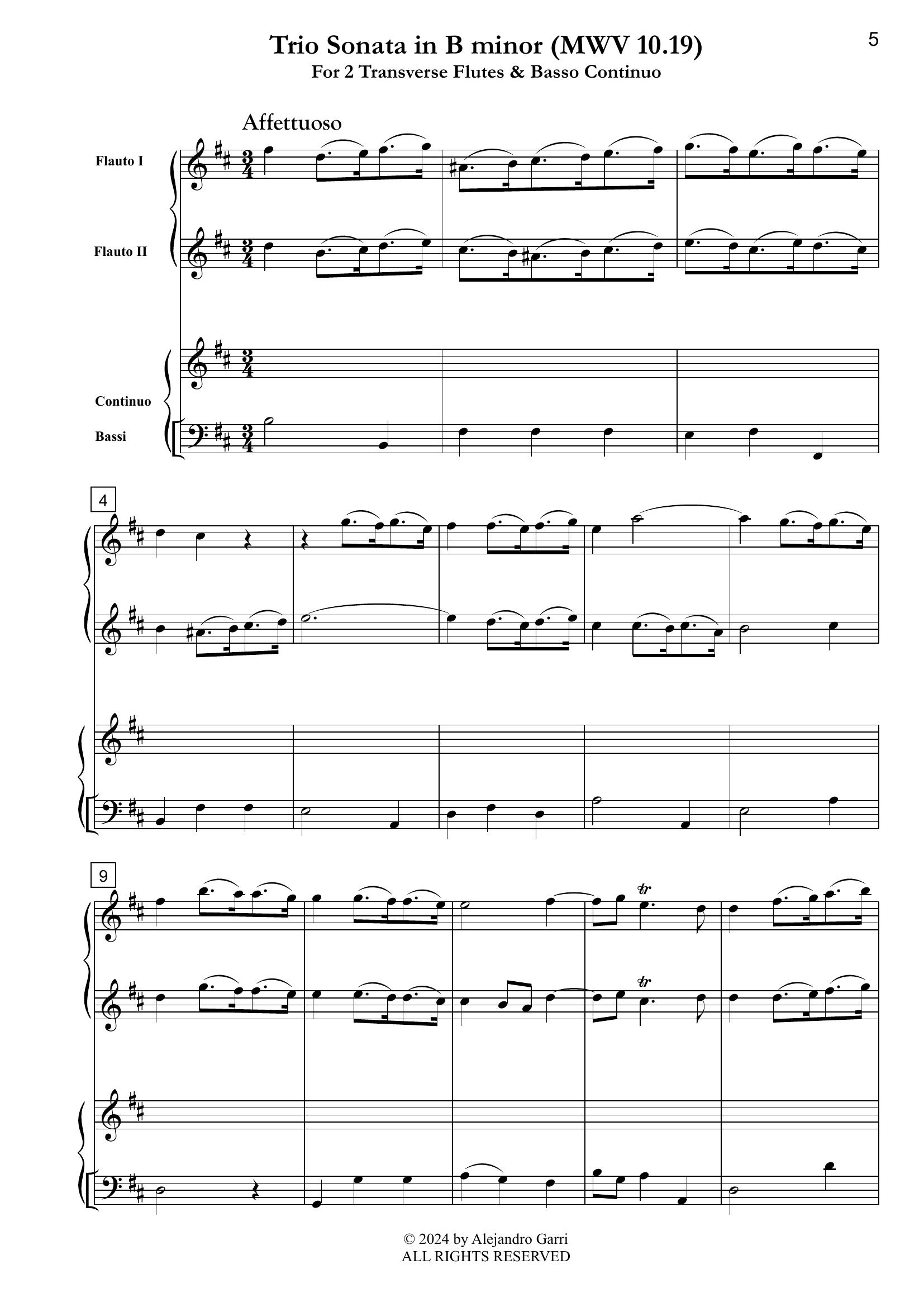 Molter, Johann Melchior (1696 – 1765) Trio Sonata in B minor (MVW 10.19), for 2 Transverse Flutes & Basso Continuo (full score & 3 parts)