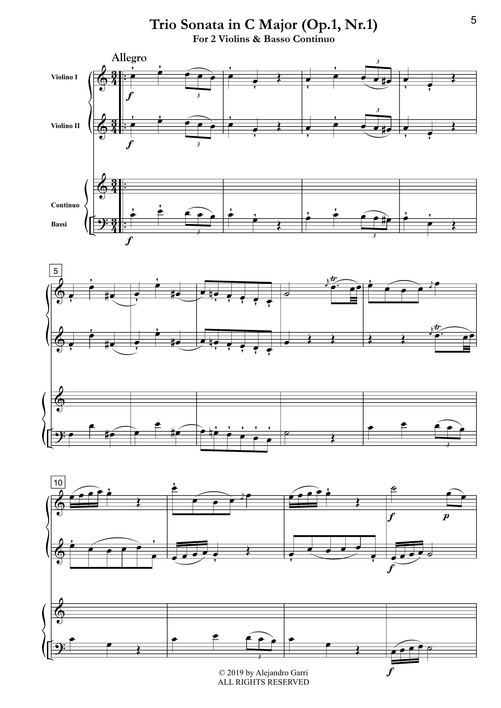 Stamitz, Johann (1717-1757) Trio Sonata in C Major (Op.1 Nr.1), for 2 Violins & Basso Continuo (full score & 3 parts)