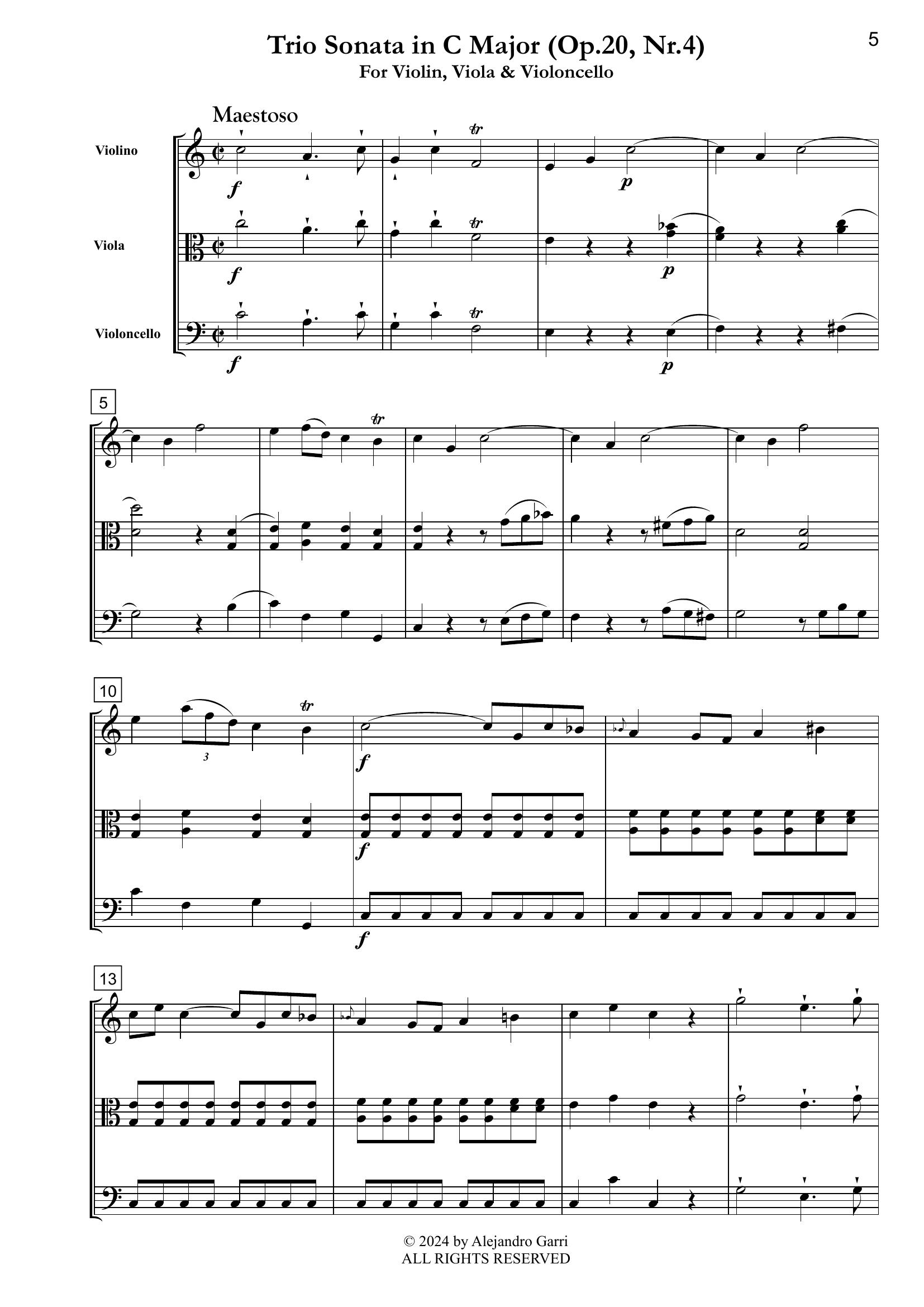 Giardini, Felice (1716 – 1796) Trio Sonata in C Major (Op.20, Nr.4), for Violin, Viola & Violoncello (full score & 3 parts)