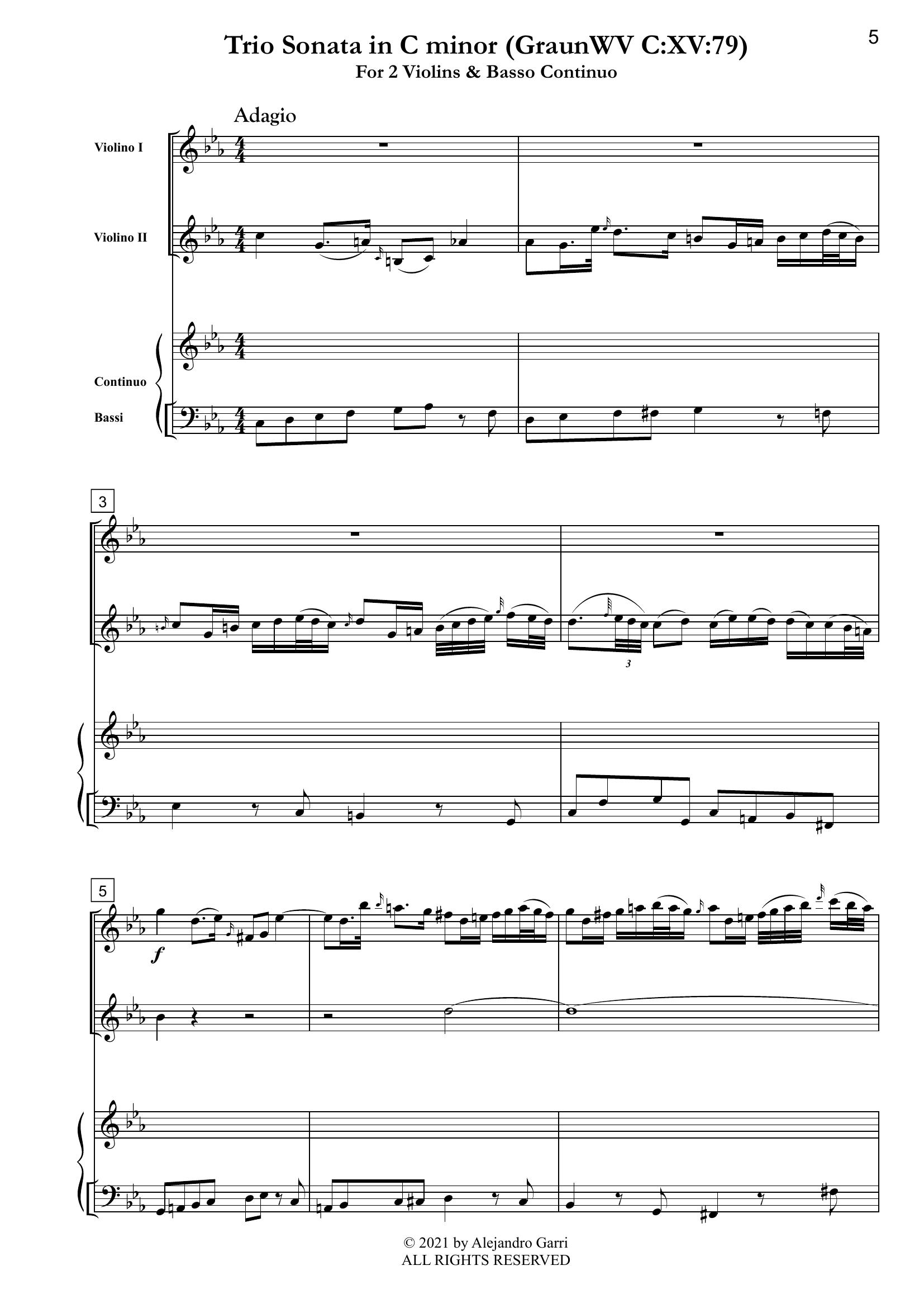 Graun, Johann Gottlieb (1702/03-1771) Trio Sonata in C minor (GraunWV C:XV:79), for 2 Violins & Basso Continuo (full score & 3 parts)