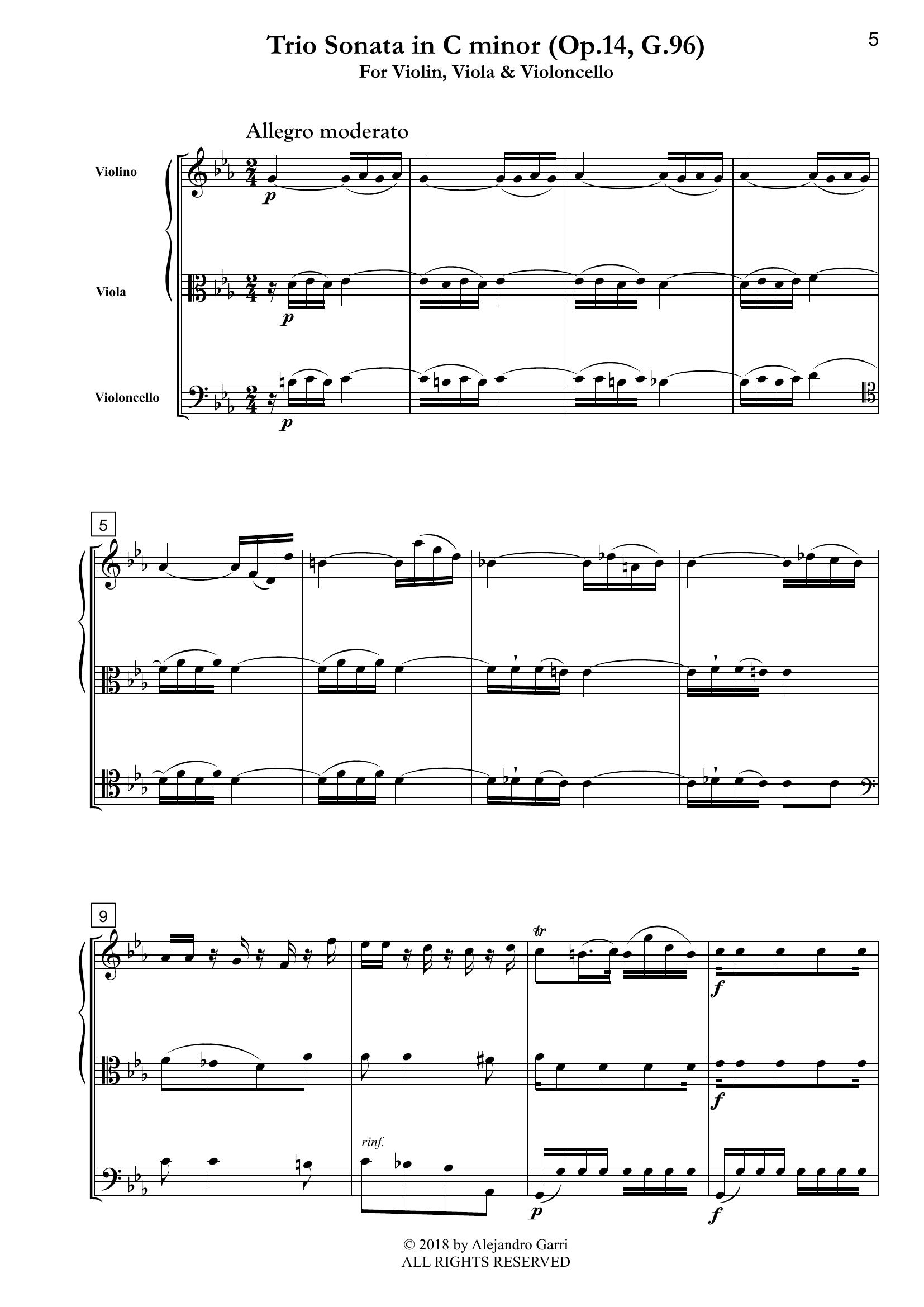 Boccherini, Luigi (1743 – 1805) Trio Sonata in C minor, (Op.14, G.96), for Violin, Viola & Violoncello (full score & 3 parts)