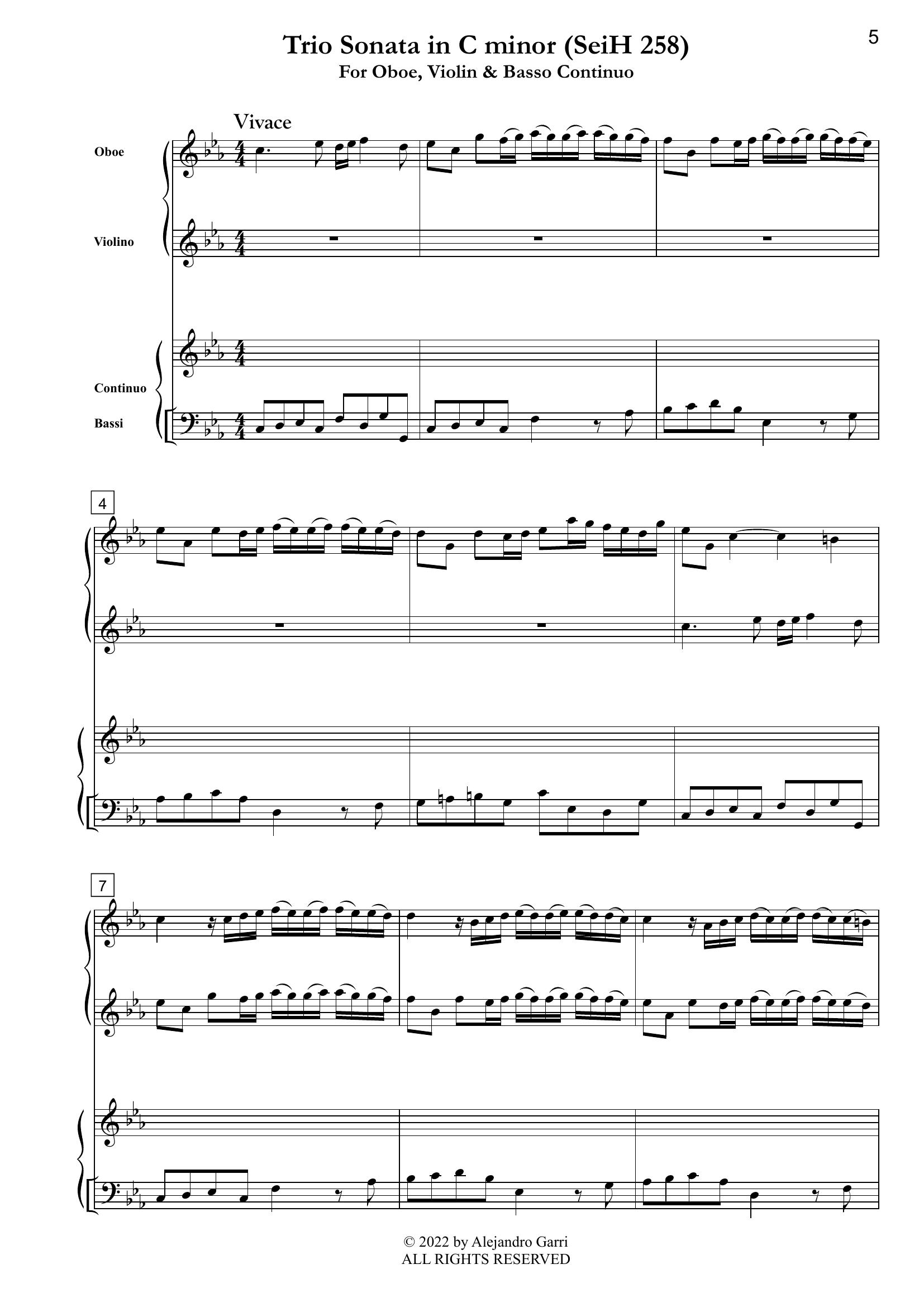 Heinichen, Johann David (1683-1729) Trio Sonata in C minor (SeiH 258), for Oboe, Violin & Basso Continuo (full score & 3 parts)