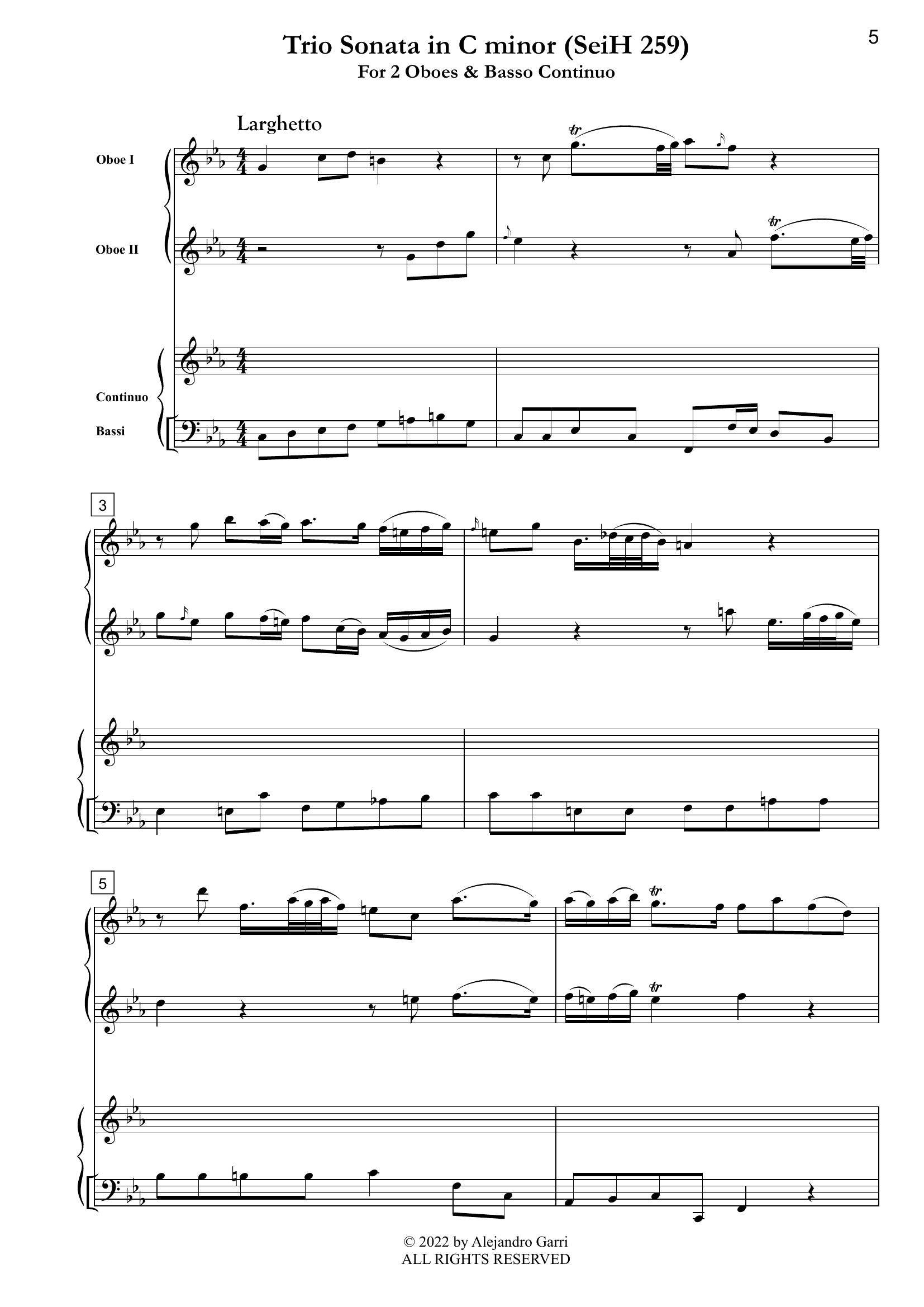 Heinichen, Johann David (1683-1729) Trio Sonata in C minor (SeiH 259), for 2 Oboes & Basso Continuo (full score & 3 parts)