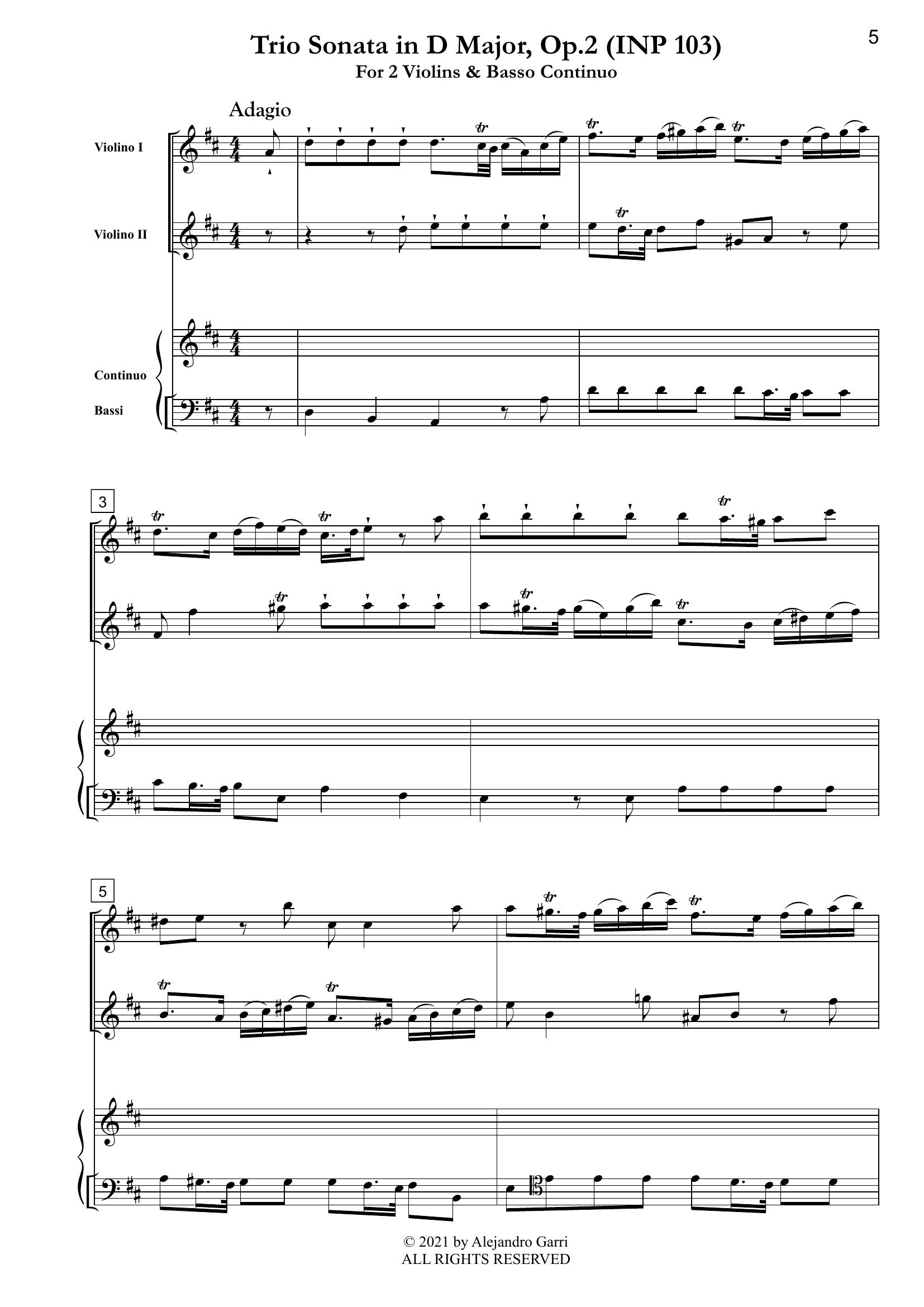 Porpora, Nicola (1686 – 1768) Trio Sonata in D Major (Op.2) for 2 Violins & Basso Continuo (Full Score & 3 Parts)