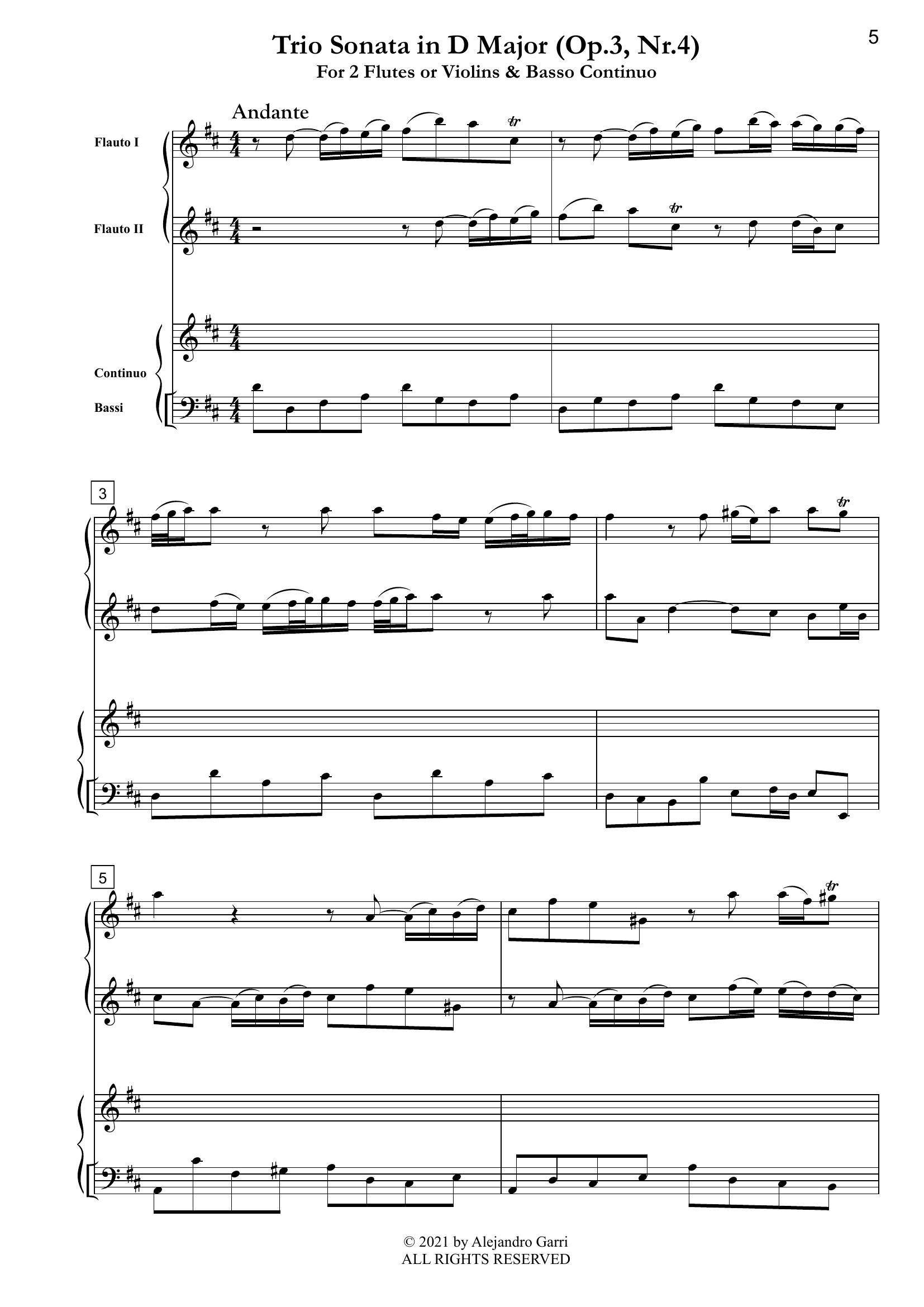 Quantz, Johann Joachim (1697 – 1773) Trio Sonata in D Major (Op.3, Nr.4), for 2 Flutes or Violins & Basso Continuo (full score & 3 parts)
