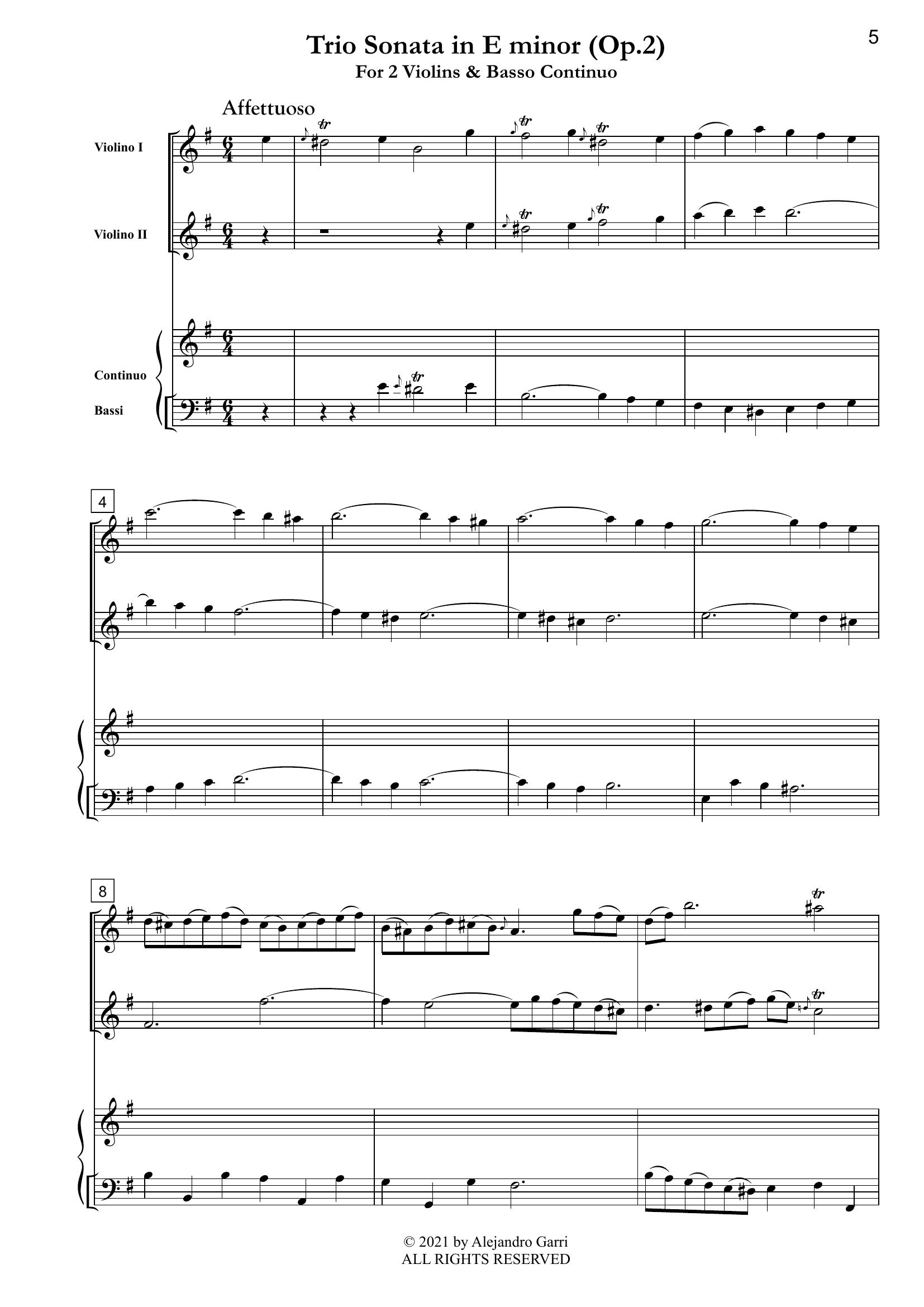Porpora, Nicola (1686 – 1768) Trio Sonata in E minor (Op.2) for 2 Violins & Basso Continuo (Full Score & 3 Parts)