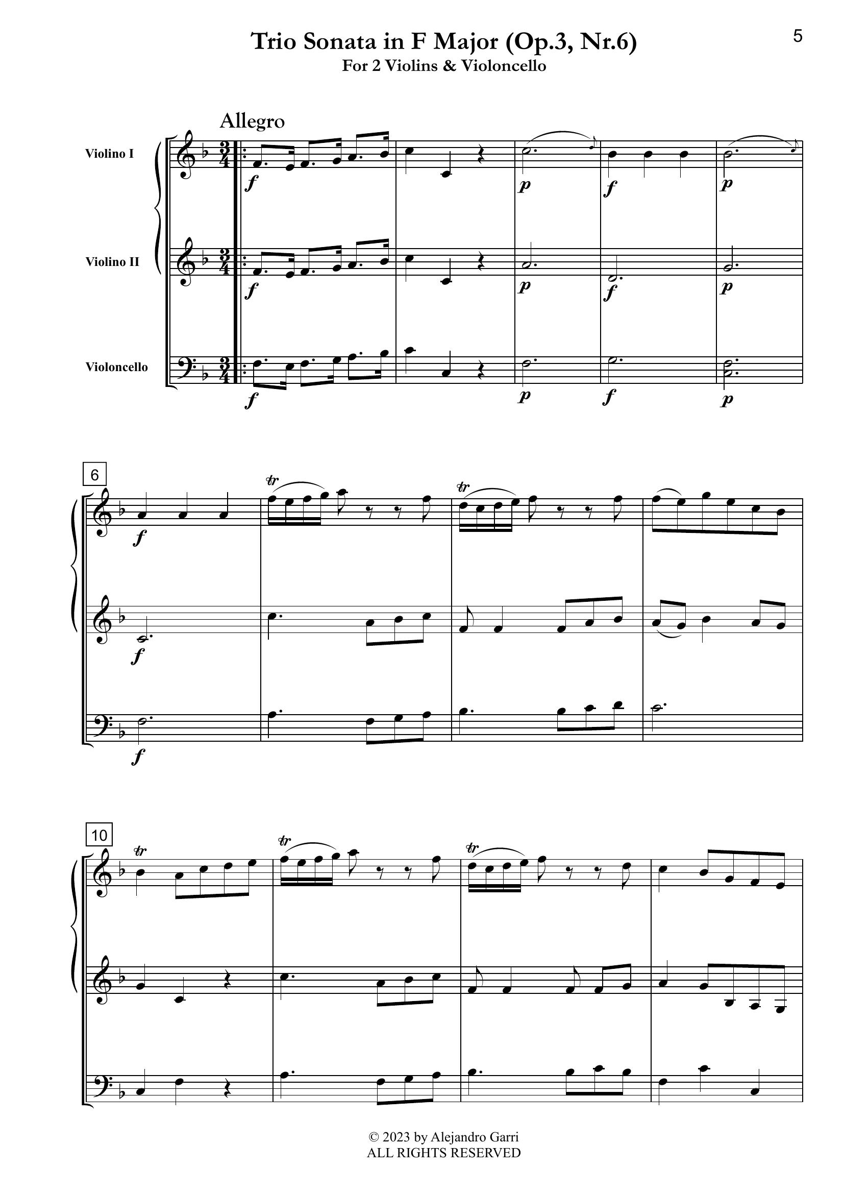 Küchler, Johann (1738 – 1790) Trio Sonata in F Major (Op.3, Nr.6), for 2 Violins & Violoncello (full score & 3 parts)