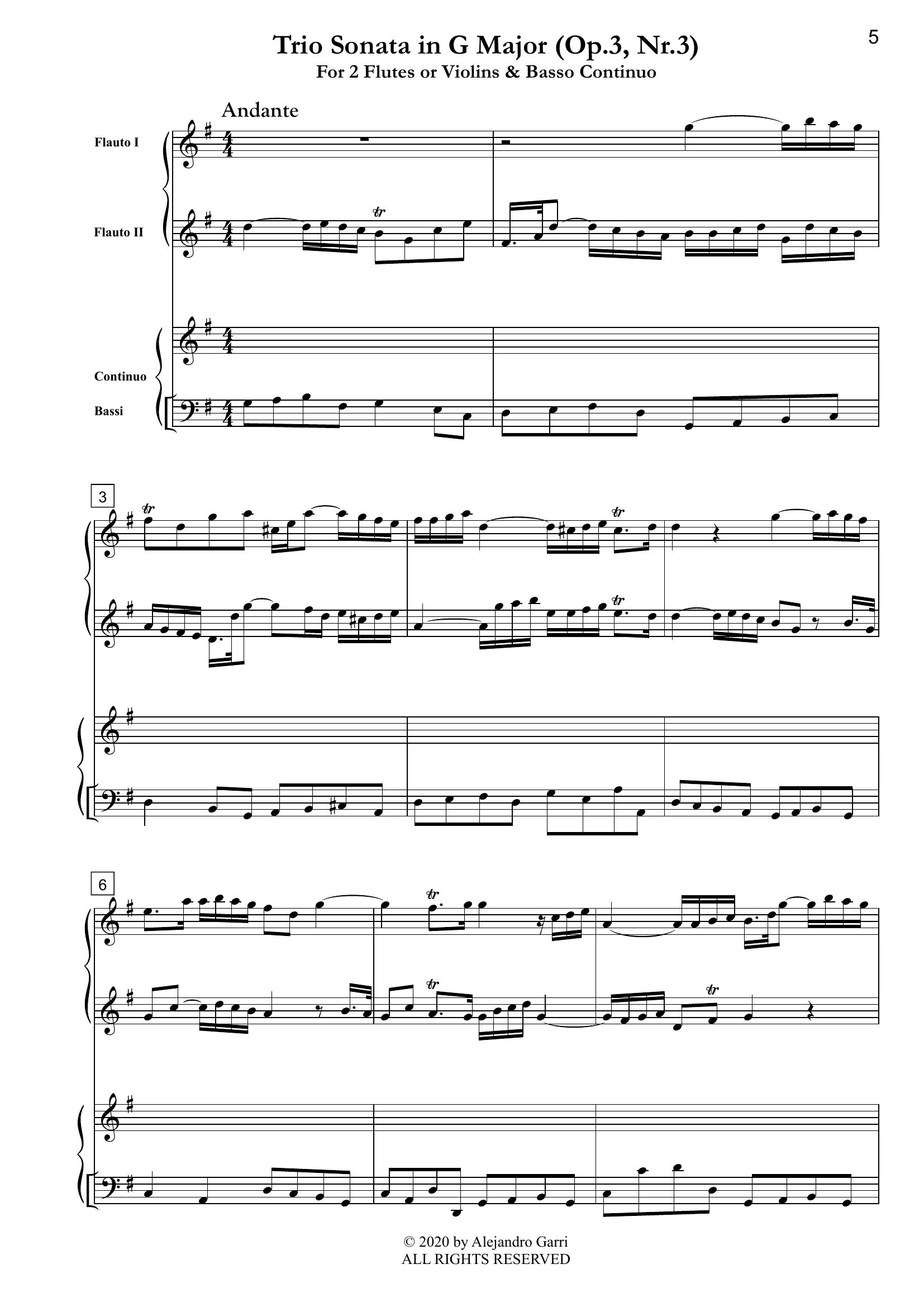 Quantz, Johann Joachim (1697 – 1773) Trio Sonata in G Major (Op.3, Nr.3), for 2 Flutes or Violins & Basso Continuo (full score & 3 parts)