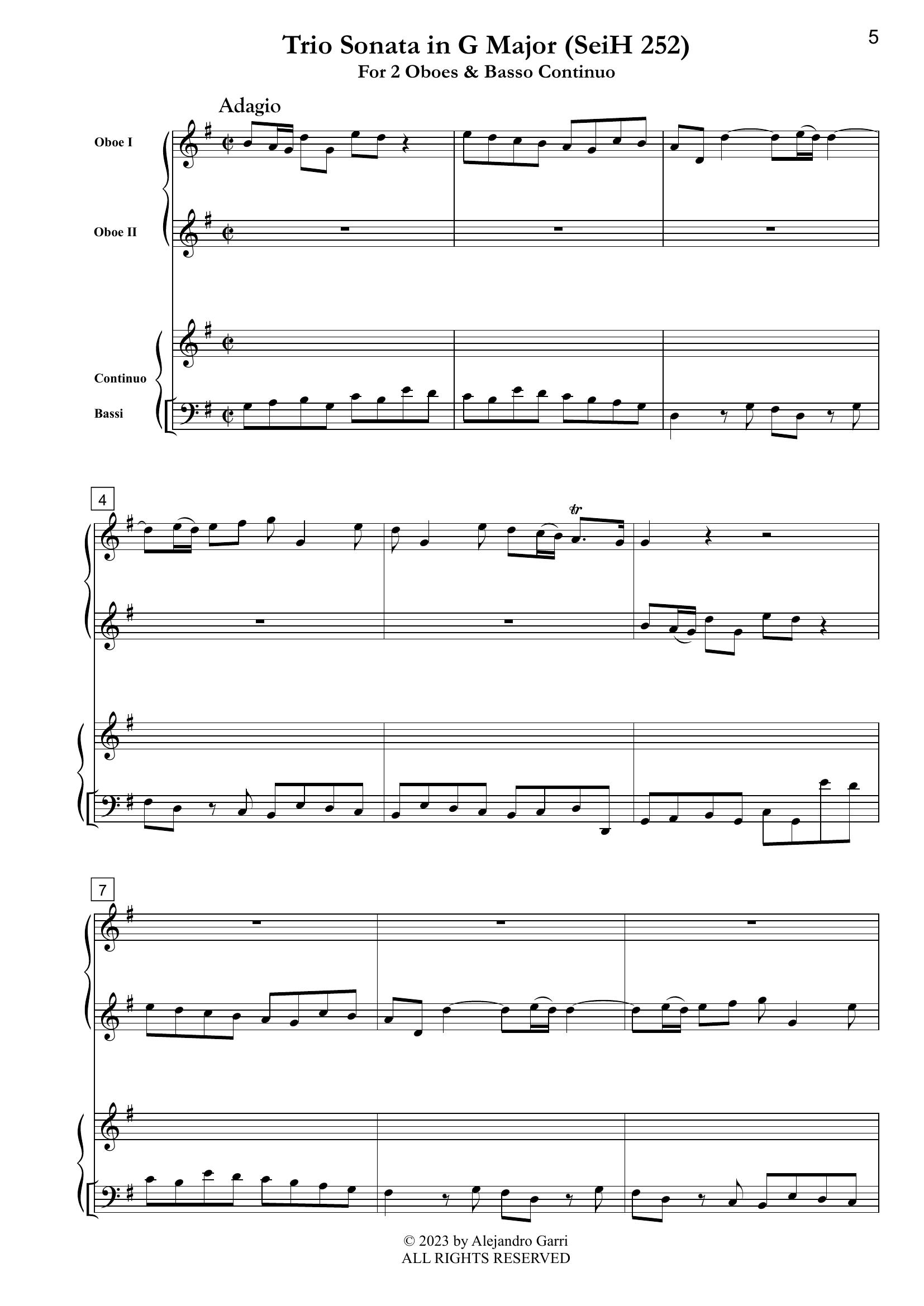 Heinichen, Johann David (1683 – 1729) Trio Sonata in G Major (SeiH 252), for 2 Oboes & Basso Continuo (full score & 3 parts)