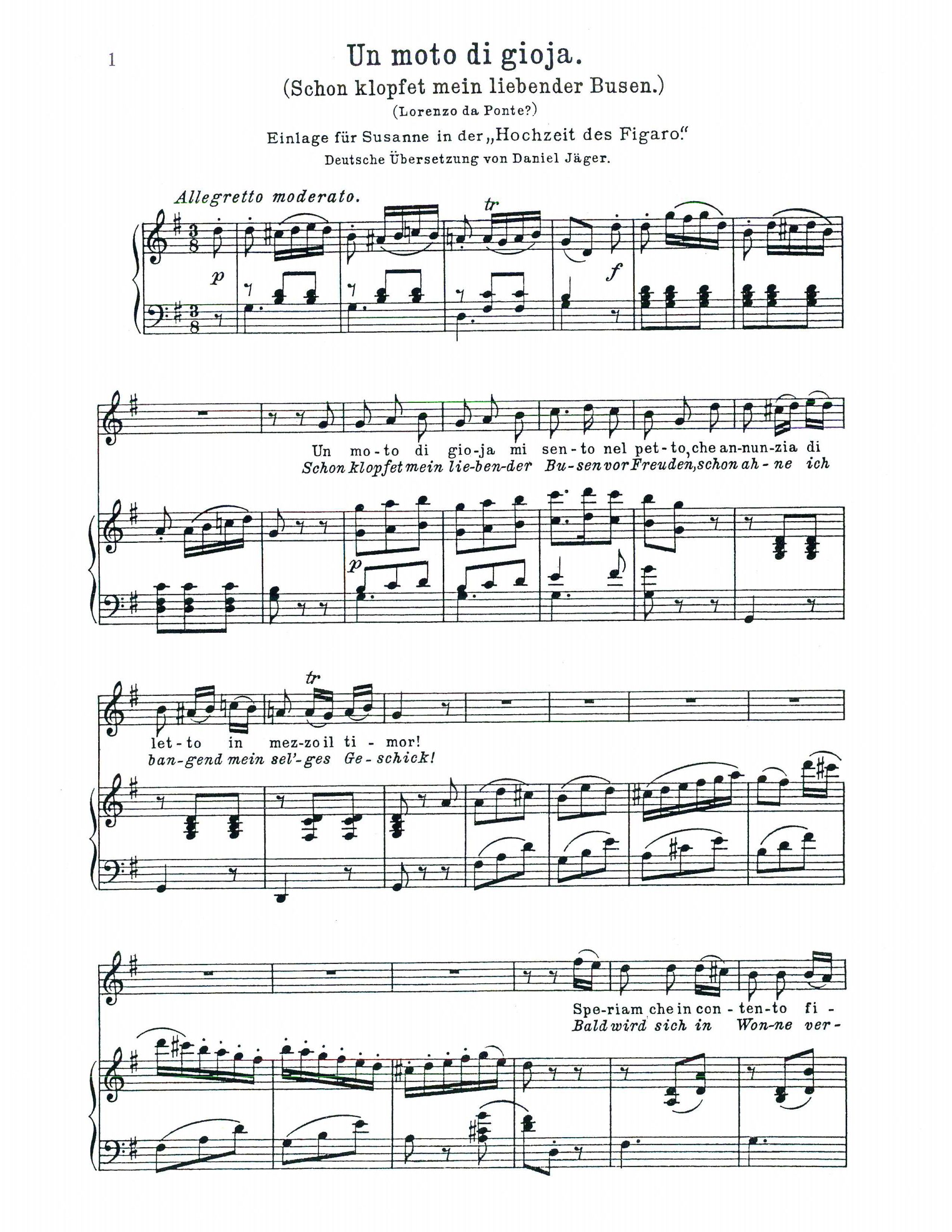 You're viewing: Un moto di gioja (Le Nozze di Figaro – alternate aria for Susanna) (G) Italian, German$4.95