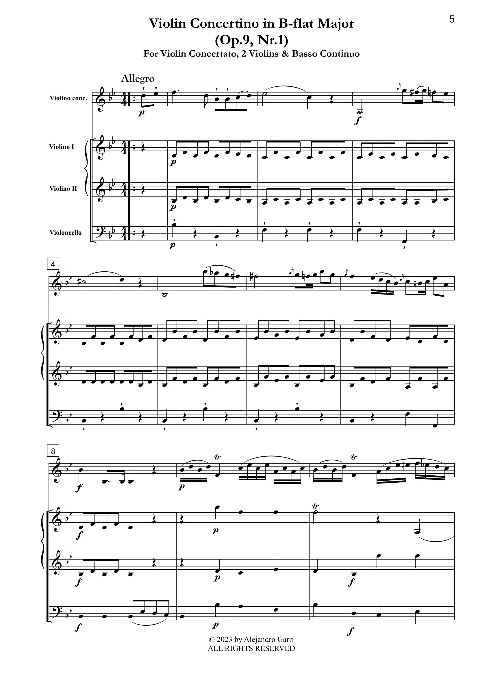 Demachi, Giuseppe (1732 – ca.1791) Violin Concertino in B-flat Major (Op.9, Nr.1), for Violin concertato, 2 Violins & Violoncello (full score & 4 parts)