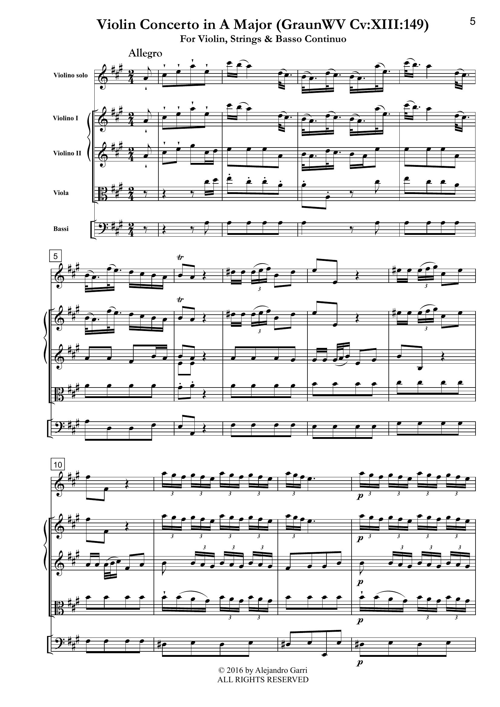 Graun, Johann Gottlieb (1702/03 – 1771) Violin Concerto in A Major (GraunWV Cv:XIII:149), for Violin, Strings & Basso Continuo (full score)
