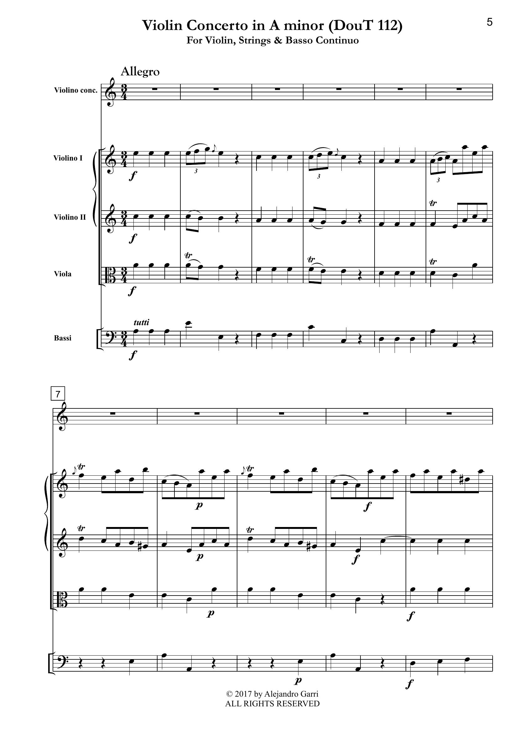 Tartini, Giuseppe (1692 – 1770) Violin Concerto in A minor, (DouT 112), for Violin, Strings & Basso Continuo (full score)