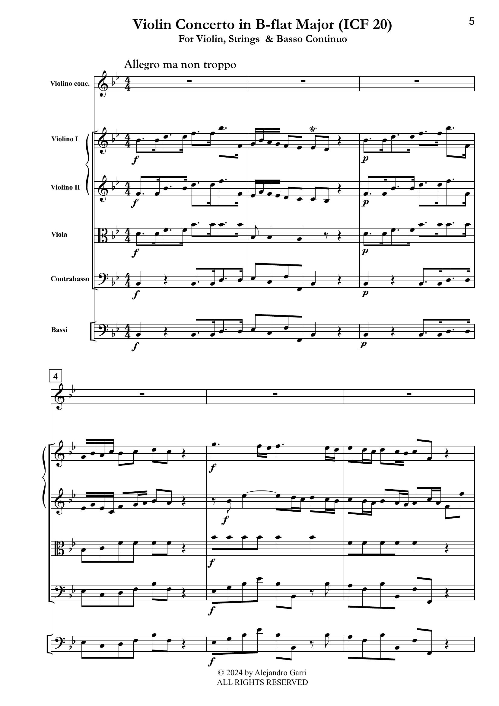 Förster, Christoph H. (1693 – 1745) Violin Concerto in B-flat Major (ICF 20), for Violin, Strings & Basso Continuo (full score & 6 parts)