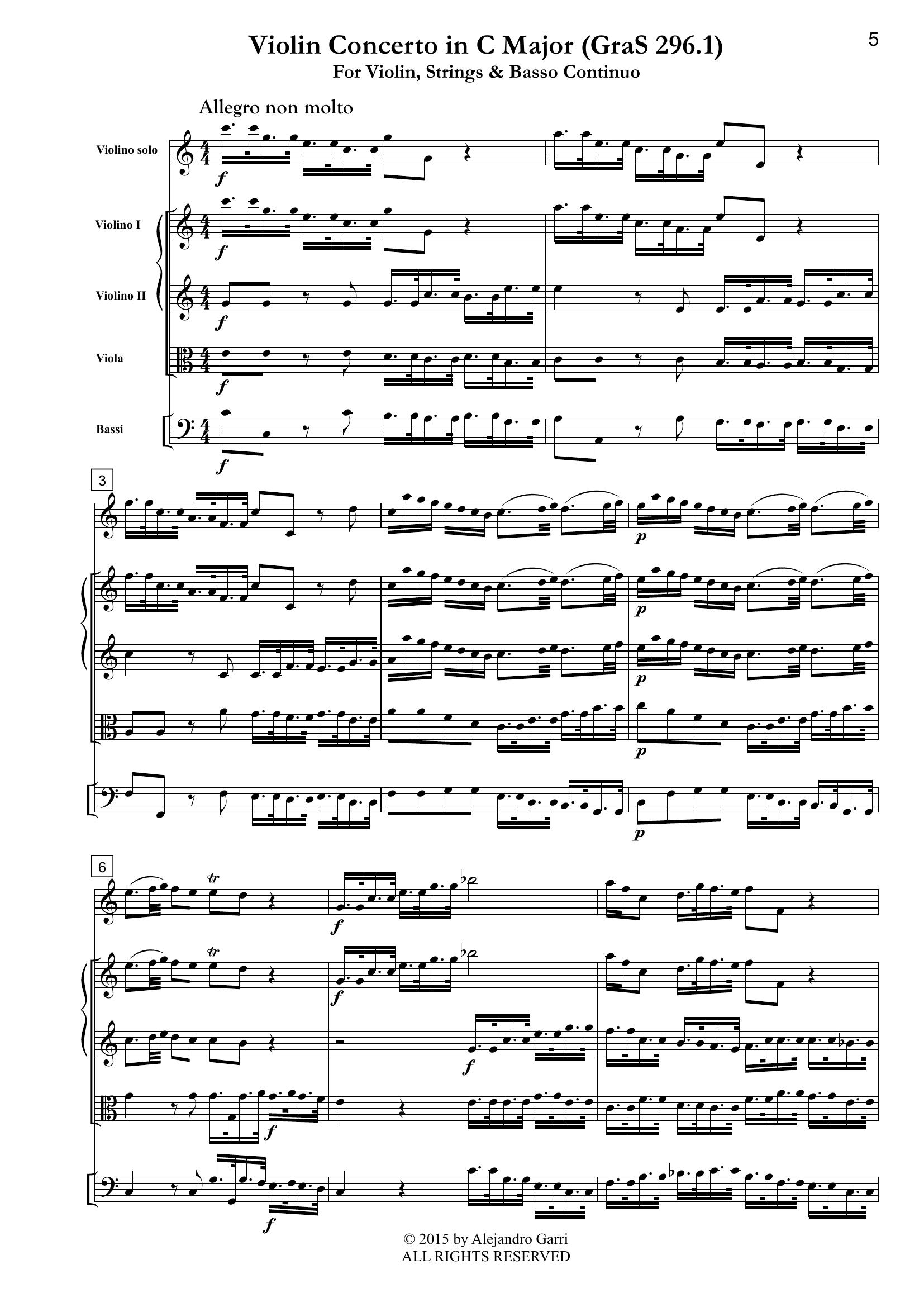 Stamitz, Johann (1717 – 1757) Violin Concerto in C Major (GraS 296.1), for Violin, Strings & Basso Continuo (full score)