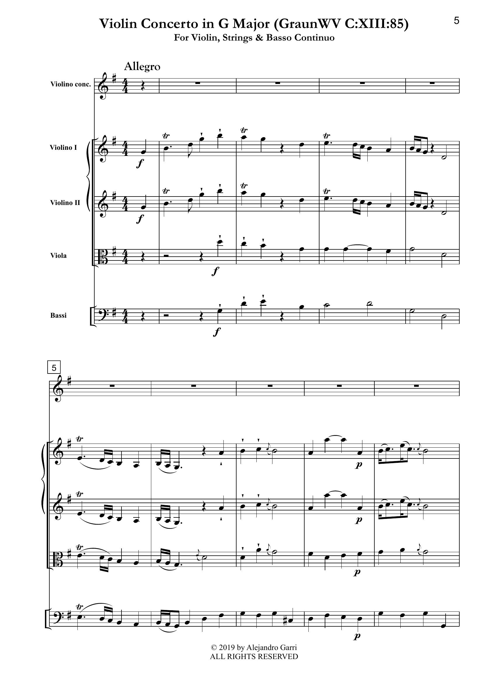 Graun, Johann Gottlieb (1702/03 – 1771) Violin Concerto in G Major (GraunWV C:XIII:85), for Violin, Strings & Basso Continuo (full score)