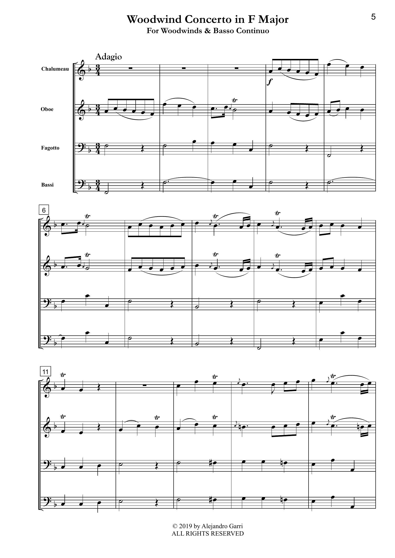 Hasse, Johann A. (1699 – 1783) Woodwind Concerto in F Major, for Chalumeau, Oboe, Bassoon & Basso Continuo (full score & 4 parts)