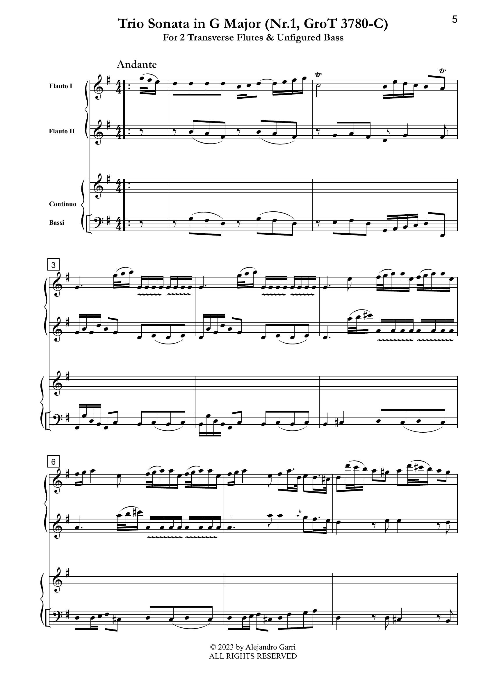 Trio Sonata in G Major (Nr.3, GroT 3787)